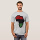 This shirt has the colors of Africa and it's desendants. Red for the blood of the ancestor. Black for the people who love it. And Green for Mother Africa herself.