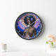 I received this as a birthday gift from my husband to replace a clock that had broken. It was perfect, pictures of my sweet family to see at every hour of the day. The size of the pictures looks nice for the size of the clock and I love looking at it! The only downside is there is no cover for the battery on the back, which makes me nervous having little kids running around the house, but an easy fix with some tape. The printing turned out clear, considering they were all cell phone pictures. Some of them look slightly grainy upon getting close up. But so nice overall!