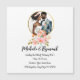Customizable save-the-date invitation features watercolor art of a beautiful brown-skinned couple as bride and groom. Floral accents, all text available for personalization, this melanated invite has a peach and coral color scheme.