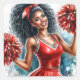 This sticker set features watercolor artwork of a beautiful brown-skinned cheerleader in red cheer uniform with pompoms and a big, pretty smile!