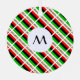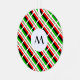 A tiled design using the African American Flag or the Flag of the African Diaspora. A round circle of white squiggly squares has a place for an initial so you can personalize this round metal ornament with the design on both sides.