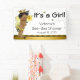 Bee baby shower banner with adorable African American baby girl in a cute bumble bee outfit on a pretty black and gold background with flying bees. You can easily customize this cute bee banner for your event by simply adding the text of your choice in the font style you prefer.