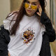 I love wearing a reprint of my colored pencil drawing of Annie the cat looking over the hillside. My illustration is based on a picture I took of Annie the manx cat. The printing turned out lovely, and the shirt is soft and thick. The American Apparel shirt run on the smaller size, so I always order a large or extra large.