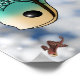 A young boy and girl hold on tight as they go off for an adventure on a flying fish. Clouds for the background with numerous flying fish and gourds as homes on top of floating islands. Size of poster is 21.45" x 16.00".