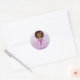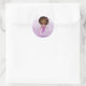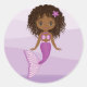 This mermaid round sticker is in purple color. The sticker is designed with beautiful African American mermaid with curly hair, starfish and purple fishtail.