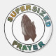 African American stencil painted praying hands, enclosed in a circular lettering 'supersized prayer'.