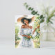 This postcard features a watercolor-style digital artwork depicting a radiant Black woman in a sunlit lemon orchard, exuding warmth, joy, and natural beauty. She wears an elegant, white off-the-shoulder, lace-trimmed dress, evoking a romantic, countryside aesthetic. A wide-brimmed straw hat shades her face, and her voluminous curls frame her glowing smile. She delicately picks a ripe lemon from the tree while holding a handful of fresh lemons in her other hand. The background is a lush, sun-drenched orchard filled with vibrant green leaves and golden lemons, with a woven basket nestled among the foliage, ready for harvest. This artwork captures the essence of summer, abundance, and peaceful rural living, making it ideal for themes related to nature, sustainable farming, slow living, and vintage-inspired fashion.