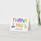 A menagerie of African animals and bright, happy colors make this baby shower thank you note a cheerful and fun way for the mom-to-be to send her message of thanks after a gender neutral, safari themed celebration. Personalize the from and name text on the front and give as a give to the mother to be on her shower day.