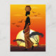 Beautiful Woman African Silhouette dressed with Wax traditional Fabric Dress, carrying a hand made decorated jar, Walking in the Amazing Nature of the African Savanna, on a warm and Peaceful Sunset. Original Vector Illustration Copyright BluedarkArt TheChameleonArt.