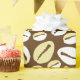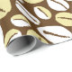 Stylish ethnic African Caribbean seashells print gift wrap patterned with ivory and cream cowrie shells on dark brown