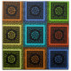 Discover the high-energy beauty of the Charming Checkered Multicolored Pattern Art Design motif. This visually captivating design is structured as a nine-square grid, where each segment features an intricate, contrasting composition. A central dark square containing a delicate, colorful mandala-style motif is surrounded by a brightly checkered, multicolored border that defines the pattern's lively aesthetic. The rich palette includes pops of orange, deep blue, turquoise, red, and lime green against a black ground, making it a perfect, versatile choice for products ranging from home décor and fabrics to bold apparel and accessories.