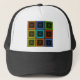 This artwork features a grid of nine squares, each containing a repeating circular pattern. The squares alternate in color, creating a striking checkered effect across the entire image. The circular patterns within the squares exhibit a subtle mandala-like quality, enhancing the visual complexity of the composition.