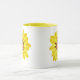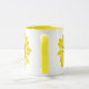 Coffee mug in a Digital painting of a single Gazania flower, sometimes called an African Daisy, in shades of mustard yellow and brown, on a deeper mustard gold background