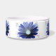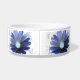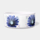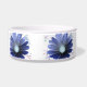 This awesome pet bowl features a beautifully detailed photograph of an African daisy flower. The photo has been digitally altered, resulting in a stunning glowing blue flower. The centre of the flower glows the brightest, while all the petals have a deep blue colour that fades to a paler blue the further away they get from the centre of the flower.