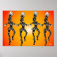 Bright graphic art adds a splash of color to your wall. Four African dancers on a bright red orange background.