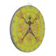 African primitive design with dancer and sun shape decoration on yellow background
