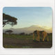 This beautiful image features the plains of Kilimanjaro and some noble Elephants roaming the landscape.