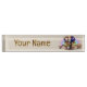 The product was just like it was in the pics, everyone at work loves it! Came on time and it was neatly packed. Bold and Clear. My name can be seen from far and it matches in color.