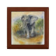 Original watercolor painting by Sandra Taylor Gale, of an African elephant walking through golden grasses under an orange setting sun. Great design for nature lovers, kids, elephant lovers and endangered wildlife conservationists.