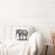 African Elephant with Tusks Throw Accent Pillow.The Arfrican elephants are a larger than the Asian Elephants. African have larger ears which reach up over the neck, a part of the back that is concave, the trunk has more wrinkles, and they even eat different food - mainly leaves versus grass. This realistic black and white drawing shows the elephant standing. He has a long trunk, an ear flapped back, and long tail. Shadows underneath and details make him come alive. Wonderful image.