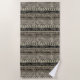 A summer beach towel with a geometric pattern inspired by traditional motifs from Africa. It's hand drawn with a black ink pattern and neutral background colors. This design incorporates stripes, squares, triangles, dots, and more shapes. It also has a distressed texture for a rustic feeling. Resize the pattern and add any text if desired. Unique beach towel for anyone that loves African culture!
