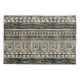 A pillowcase with a geometric pattern inspired by traditional motifs from Africa. It has a black ink pattern with neutral color stripe background colors and a distressed texture for a rustic feeling. Perfect for a safari or African themed bedroom or for anyone that likes African decorative designs.