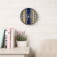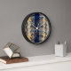 Add a touch of cultural elegance to your home with this stunning African Kuba Cloth Clock. Featuring a geometric print in rich midnight blue, black, and tan beige, this clock is a perfect blend of traditional artistry and modern design. The intricate patterns and bold colors make it a standout piece that will enhance any room's decor. Whether you're looking to add a unique accent to your living space or searching for a thoughtful gift, this clock is sure to impress.