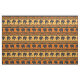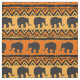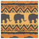Here is unique fabric that features silhouette elephants in an African motif design. The black elephants march across fields of bright orange and gold, with geometric tribal symbols complementing the design.