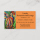 This business card features an African painting to the left and the business details to the right. All text on the front of the business card is editable including the font size, style and colour. The background colour can also be changed, if you wish. This business card can be used for restaurants, sushi bars, clothing stores, caterers, photographers, schools etc.