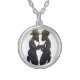 I chose gold plated so that the metal would not react with my skin oils and perspiration. But, I changed the necklace from the gold plated one to a sterling silver. My skin cells will tarnish the silver. But it will not look as bad if some portion of the gold plated necklace somehow became compromised. Zazzle did a find job turning the picture into a pendant for me. As you can see, the colors and the printing of the final product, match the preview. The picture I took is not very clear. But I am pleased with the product I received.