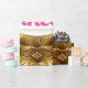 Adorable African Prince wearing a gold crown & white diaper with blue slippers alongside a beautiful African Princess wearing a pink ruffled diaper with gold crown and pink bunny slippers on an elegant gold frame on a gold glitter background