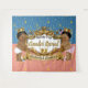 Elegant Pink and Blue Color Block Backdrop Design with Gold sparkles features Adorable African American Prince and Princess with gold crowns on an elegant gold frame. All Text is Editable. Great for (boy and girl) twins baby shower or twin boy and girl 1st birthday party ©2022 Miss Sassy Party Designs