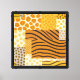 A sophisticated African Print Patchwork canvas featuring composite animal patterns (giraffe, leopard, tiger) rendered in a flat, pure-color style. An excellent choice for high-end texture and safari-themed decor.
