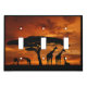 Triple toggle acrylic switch plate with an image of five giraffes silhouetted by a glorious red and gold African sunset. See the entire Safari Switch Plate collection in the DECOR | Switch Plates section.