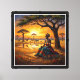 Experience the warmth and soul of Africa with this stunning sunset art print. A traditionally dressed African woman sits peacefully beneath an acacia tree as giraffes and wildlife gather near a golden reflective waterhole. The vibrant sky, rich earth tones, and serene atmosphere create a powerful harmony between culture and nature.