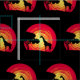 African sunset illustration with red grunge sun, giraffe and tree silhouette decoration on black background. It is possible to change the background color and to add different one to the design with your choice.