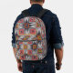 African tribal geometric pattern, monogram printed backpack