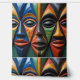Add a bold statement to your space with this striking artwork featuring three stylized African masks in vibrant, symmetrical harmony. Each elongated mask is adorned with intricate geometric patterns and bathed in rich shades of blue, orange, green, and black. Crafted with a sleek, glossy finish, the surface reflects light beautifully, bringing depth and vibrancy to any room. While the design elements remain consistent across all three masks, each one showcases unique color placements that celebrate individuality within unity. Set against a soft gradient backdrop, this artwork brings cultural richness and visual dynamism into modern interiors. Perfect for collectors, creatives, and lovers of Afrocentric design, this piece adds elegance,