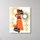 A fabulous illustration with a retro style 1970's look and depicting an African Tribal woman carrying a clay jug in lovely shades of orange and black.