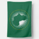 This design features the flag of the African Union, which is a continental union consisting of 55 member states located on the continent of Africa. The African Union was first announced in the Sirte Declaration in Sirte, Libya, on 9 September 1999; the bloc was founded on 26 May 2001 in Addis Ababa, Ethiopia, and launched on 9 July 2002 in Durban, South Africa. The AU has political centres in Johannesburg, South Africa, and Addis Adaba, Ethiopia. The member states of the African Union contain over a billion people, as well as popular world landmarks such as the Sahara desert and the Nile river.