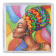 Stylized African Woman portrait, wearing and surrounded by Bright Colors of the Traditional Wax Fabric Design. Original Hand Drawing Copyright BluedarkArt.