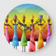 Folk art with a group of traditional African women balancing pottery on their heads dressed in vibrant colorful folk dresses.