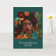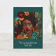 Sweet cute embroidery Mother's Day greeting card featuring a beautiful woman's face on a emerald background. On the front, you can see the beautiful art which makes you interested and curious. Easily edit recent text on cover: 'For my beautiful mom with love'
