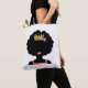 Cute tote bag featuring a girl wearing her afro, crown, and bow. Prefect to use as a party or gift bag or every day use.
