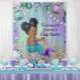 Afro Mermaid baby shower backdrop with adorable African American mermaid with cute afro hair on a beautiful jewel background. This African American mermaid baby shower banner banner is easily customized for your event by simply adding your text in the font style and color you prefer. You can also choose the size.