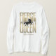 I love this shirt. I had written to the artist asking her if this picture was available on a shirt, and she wrote me back telling me where I could find the shirt. These shirts can be custom made to have a different saying. I loved this saying and went with it. The artist wrote me back later to tell me that she had seen my order go through. How's that for service? Pretty special. It's just as displayed. Perfect!
