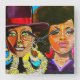 Looking for a unique gift? This funky clock featuring Black Queen, Jill Scott and Afro Queen, Ereka Badu will add some flair to any room. Auntie Karen showcases emerging artist, Valencia Goodwin. The original "Badu vs Scott" was inspired by the popular "VERSUS Battle" TV Program. A portion of the proceeds benefits The Auntie Karen Foundation. Original Description: Medium: Medium: Acrylic on canvas Dimensions: 48in. x 60in.