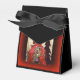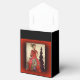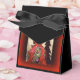A bold and festive touch to your holiday gathering! This Afrocentric Christmas Favor Box features a photo image of a contemporary holiday tree made from a dress form dark-skin mannequin. The bodice is a short-sleeved sequined red dress and the bottom is made from artificial greenery decorated with red streamers and ornaments of purple, red and gold. The dress form has a big, bold necklace and matching bracelet with the same color scheme. The African-American-style dreadlocks complete the fashion statement. A black Christmas tree silhouette stands in the background. Text may be added for personalization at no additional charge! Photography by Glenda Motsavage, a Florida-based travel writer and author.