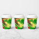 Dramatically vivid swirls of Afrocentric inspired red, yellow, black and green designed paper cups.