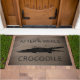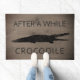 After A While Crocodile Doormat. Rustic faux weathered wood welcome mat. This reptilian doormat can be personalized with your own message. Makes a fun novelty gift for alligator and crocodile lovers. for Visit Jenn's Doodle World for even more unusual doormats and original home decor.
